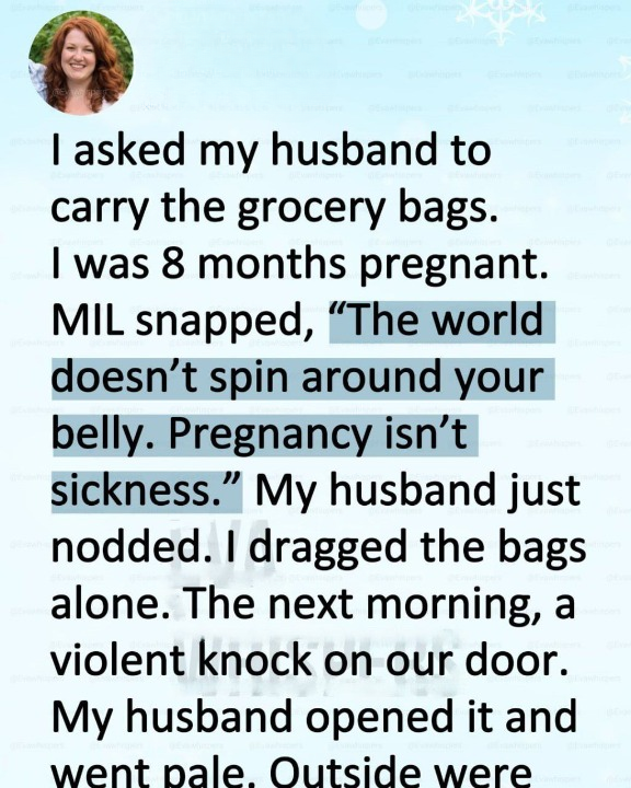 One evening, my husband and I returned from a routine grocery run, and the strain in my back and legs was intense. I calmly asked if he could carry the bags inside. Before he could respond, my mother-in-law snapped that pregnancy wasn’t an illness and that the world didn’t revolve around me. What hurt even more was my husband’s silence. He didn’t defend me. He didn’t speak at all.