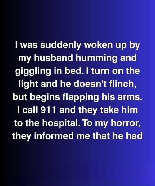 I woke up to an unfamiliar sound in the darkness—soft humming that slowly turned into quiet laughter. Beside me, my husband, Sayed, moved strangely, his arms twitching, his lips forming unclear words, his eyes unfocused. For a brief moment, I hoped it was a dream.