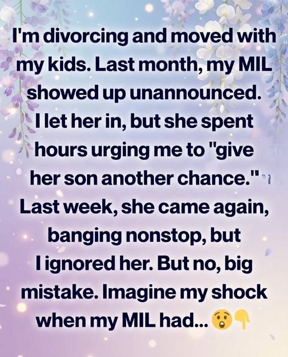 I’m divorcing my husband, Alex, and I’ve moved out with our children, Harper (8) and Milo (5). Life was finally starting to feel somewhat normal, like I could breathe again—until my mother-in-law, Joan, showed up at my door.