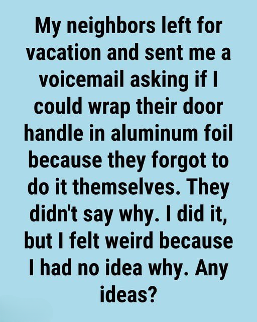 At first glance, wrapping a door handle in aluminum foil may seem like an unusual household idea, but some people use it as a simple way to stay more aware of their home’s security. Unlike alarm systems or smart devices that require setup and subscriptions, this method focuses on observation rather than prevention. Placing a layer of foil over a handle before sleeping or leaving home creates a visual reference point that can make changes easier to notice. While it doesn’t replace proper locks, it can serve as a small reminder to remain attentive.