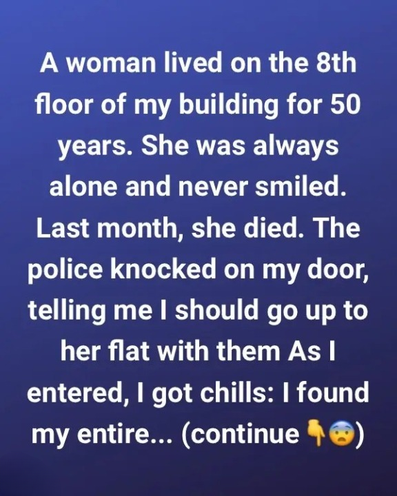 For fifty years, a woman lived alone on the eighth floor of my apartment building. She was withdrawn, rarely smiled, and most neighbors avoided her, worried she might be hostile. When she died last month, the police knocked on my door and asked me to come with them to her apartment.