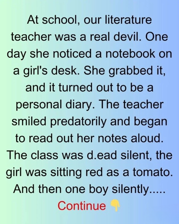 One afternoon, she noticed a small notebook on a girl’s desk. Without asking, she strode over, grabbed it, and began flipping through the pages. It wasn’t schoolwork.