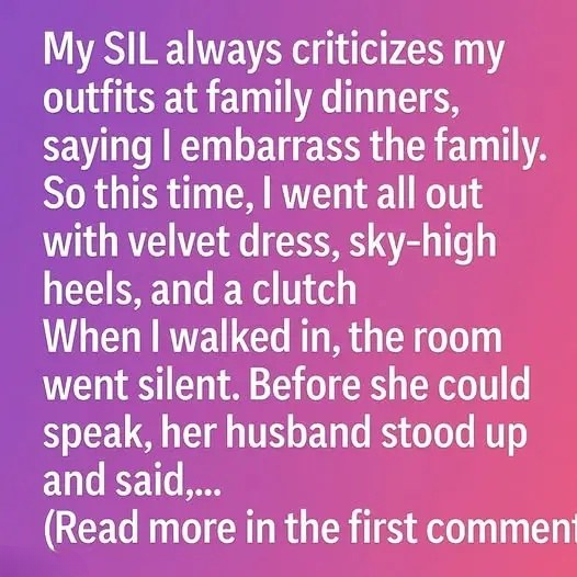 My sister-in-law always had a comment about what I wore to family dinners. “You’re embarrassing the family,” she’d murmur just loud enough for me to hear. At first, it hurt. I started doubting my choices, even outfits I genuinely loved.