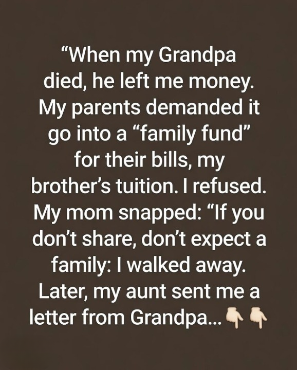 Overwhelmed, I stepped away from the conversation. Not long after, my aunt reached out and told me my grandfather had left me a letter. At first, I couldn’t bring myself to read it. The tension with my parents was still weighing on me, and their words echoed in my thoughts. I had always tried to be understanding, accommodating, and respectful—but this inheritance felt deeply personal, as if it carried a message meant only for me.