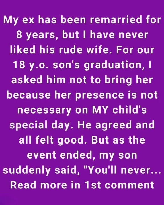 I’ve never gotten along with my ex-husband’s wife. Even after eight years of their marriage, her attitude has always felt cold and condescending. So when our son’s graduation came, I asked my ex not to bring her—I just wanted one peaceful moment focused on my child. He agreed, and I felt relieved.
