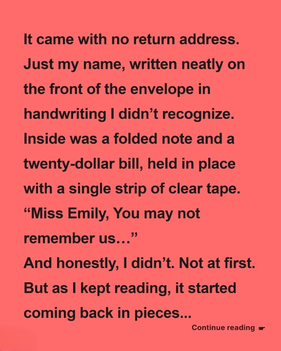 It arrived with no return address—just my name, neatly written on the envelope. Inside was a folded note and a $20 bill taped in place.