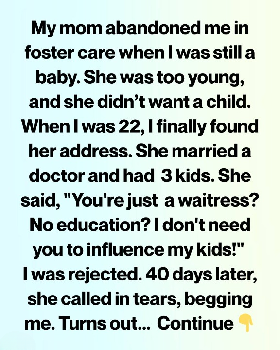 I don’t remember the day my mother left me. I was just a baby—handed over to strangers, a name on a file, quietly placed into foster care because the woman who gave birth to me was too young, too scared to keep me. That’s what I was told later.