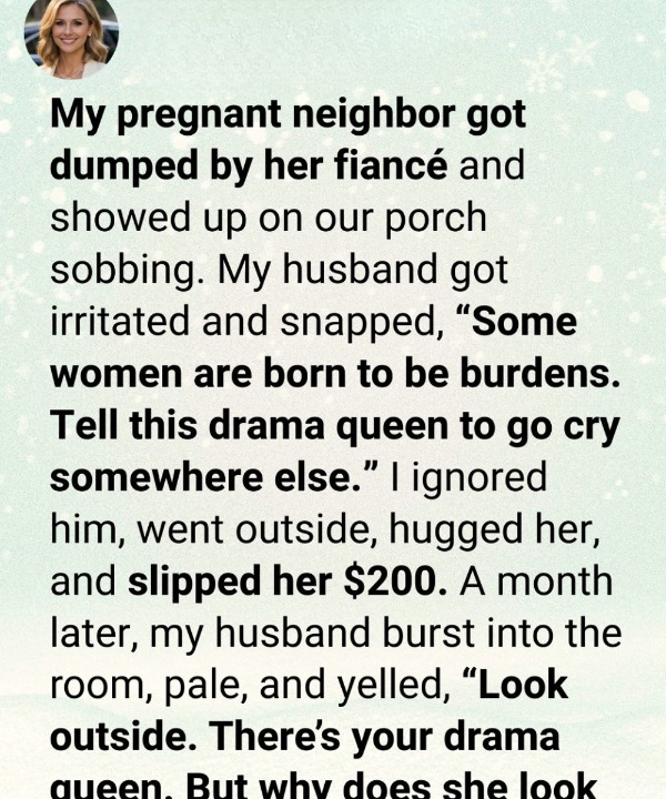 Just after sunset, my pregnant neighbor from a couple of houses down showed up at my door. She gripped the railing like it was the only thing keeping her standing, one hand resting protectively on her belly. Her face was flushed from crying, and when she reached me, she didn’t say much—she simply fell into my arms, worn out from trying to stay strong for too long.