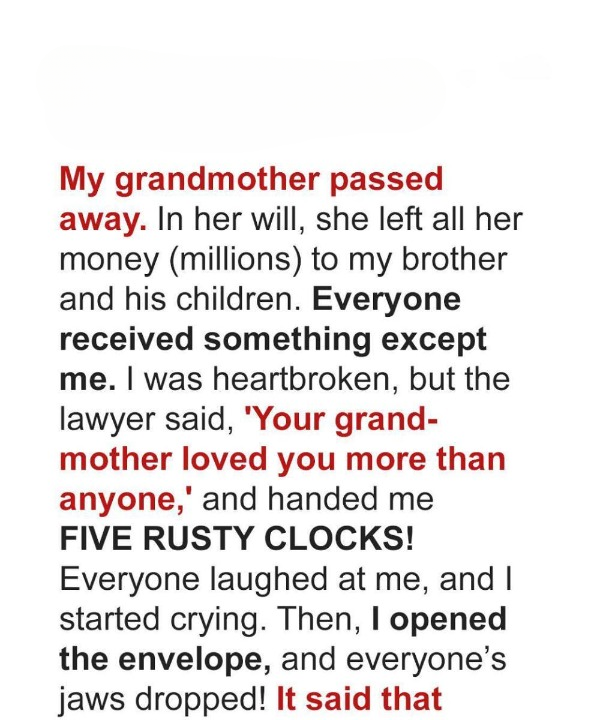 When their grandmother’s will was finally read, the results felt almost like a slight. Brian, the older brother, inherited her modest country home. Linda, the quieter, younger sister, received five old, rusted pocket watches.
