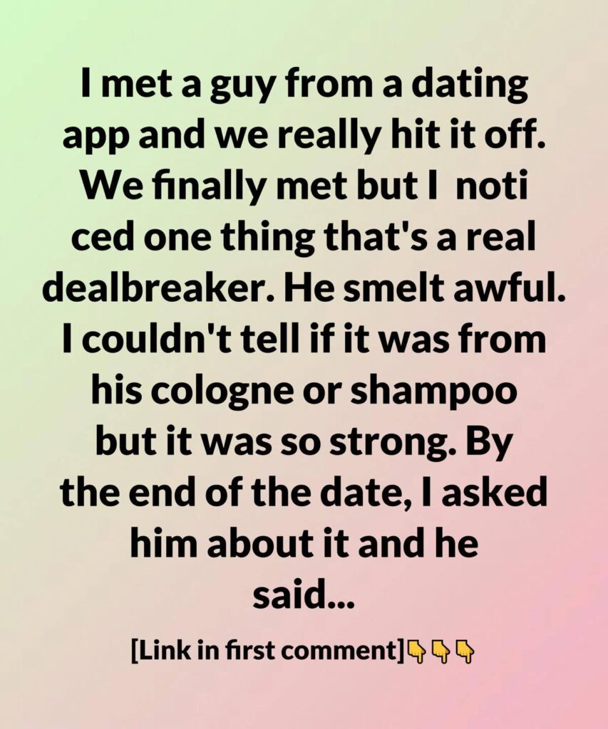 By the end of the date, I felt it was better to be honest than quietly judge. With a small smile, I asked, “Can I ask what cologne you’re wearing? It’s a bit strong.”
