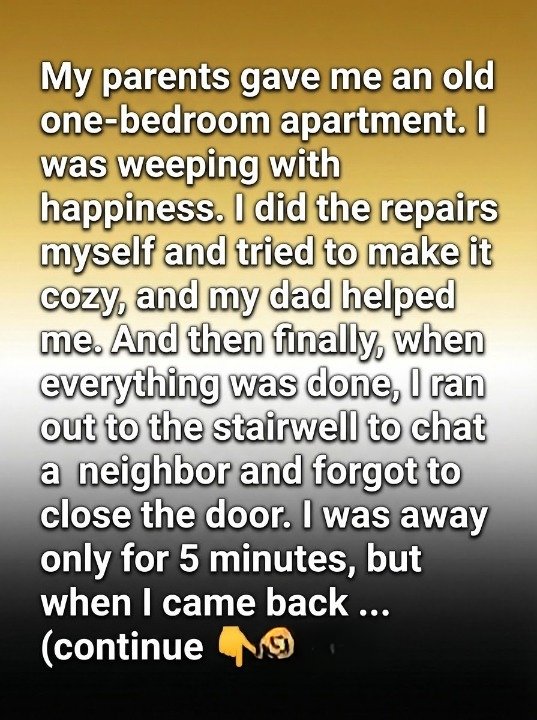 When my parents handed me the keys to an old one-bedroom apartment, I cried—not polite tears, but the kind that overwhelm when something fragile you’ve longed for finally becomes real. The place wasn’t fancy: the floors creaked, the walls needed paint, and the kitchen smelled faintly of the past. But it was mine. Tangible. A beginning I could hold.