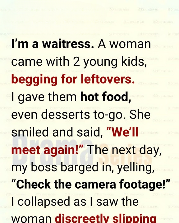 He pulled up the security footage. My heart pounded as I watched myself hand the food to the woman and her kids. Then I saw it—she paused, slipped something under the napkin holder before leaving.