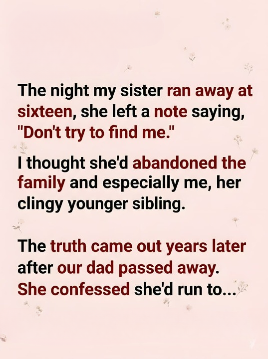 The next morning, everything had changed. Mom sat at the kitchen table in tears. Dad was silent in that dangerous, controlled way that meant anger was coming. On the table lay a single note, written in my sister’s shaky sixteen-year-old handwriting: