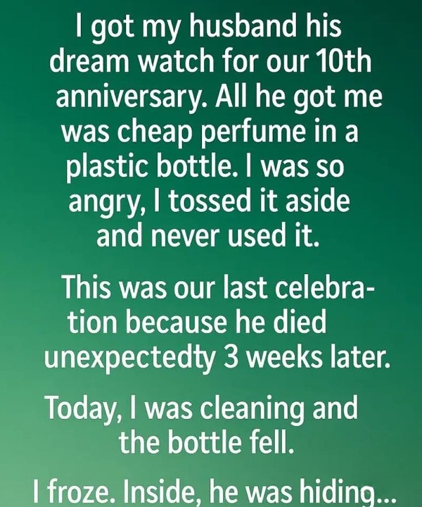 Months later, while going through our things, I accidentally knocked over the perfume bottle. As I picked it up, something felt different. Inside, hidden carefully, I found a small note and a surprise he had left for me.