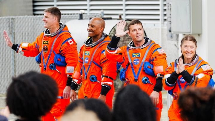 The bright orange suits worn by Artemis II astronauts are primarily designed for safety and survival during the most critical parts of the mission—launch and re-entry. This “international orange” color was chosen because it provides maximum visibility in almost any environment, whether over water, land, or in a rescue scenario, making it easier for recovery teams to locate astronauts quickly.