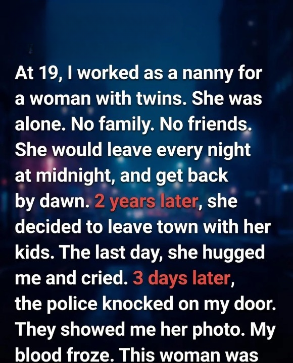 There were no pictures, no reminders of a past life—only Elena and her twins, Luca and Mira. Without planning to, I became part of their daily life. At first everything seemed normal, until I noticed something unusual: every night at exactly midnight, Elena would leave the house, and every morning before dawn, she would return without explanation.