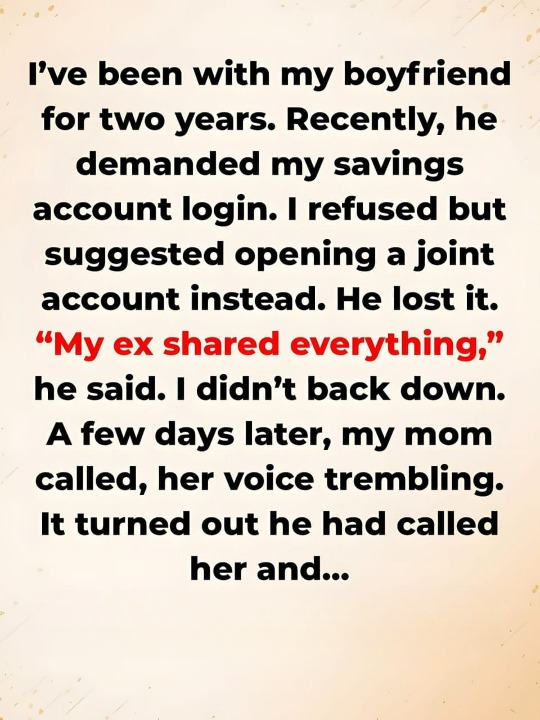 The next morning, my mom called me in a panic. She asked if everything was okay, saying my boyfriend had contacted her. He had told her he believed I might be cheating, that I was acting strange, and that he was worried about me. He even said he didn’t know who else to turn to.