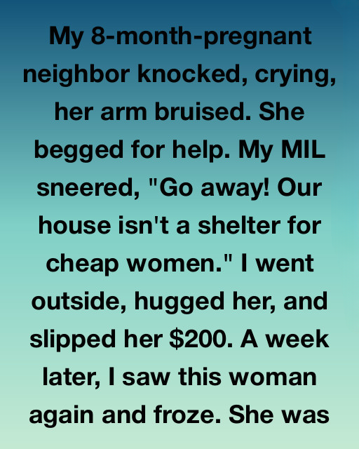 My eight-months-pregnant neighbor showed up at our door just after sunset, crying so hard she could barely form words. She was trembling, barely able to stand, one hand pressed against the doorframe as though it was the only thing keeping her upright. I had seen her around the neighborhood before—quiet, reserved, always keeping to herself—but we had never actually spoken. Seeing her like that, broken and desperate, made my chest tighten instantly.