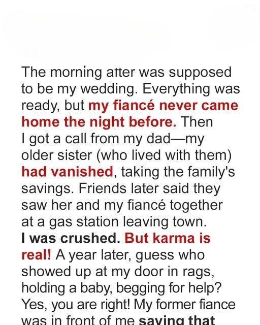 The night before Charlotte’s wedding, everything fell apart. Her fiancé vanished without a word—and her older sister disappeared with him. A year later, he shows up at her door, holding a child and carrying a story she never saw coming.
