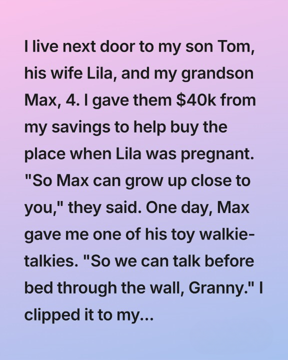 I came home after a long shift and heard the walkie-talkie crackle. At first it was just my grandson’s voice—but then I heard adult voices in the background. Conversations I was never meant to hear.