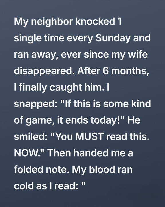 Six months after placing my wife in a care home due to Alzheimer’s, my world felt empty. Every Sunday, my neighbor rang my doorbell once and ran off. It went on for months until I finally confronted him.