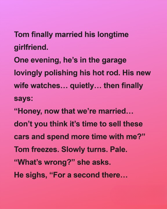 “Honey,” she said gently, “now that we’re married… don’t you think it’s time to maybe sell some of these cars and spend a little more time with me?”