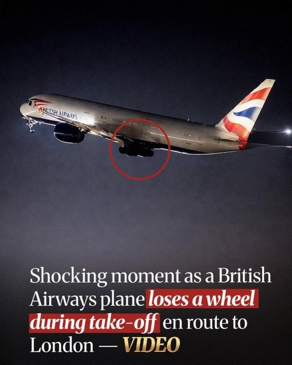 Recently released video captures a British Airways jet shedding a rear landing-gear wheel moments after lifting off from Las Vegas late Monday night, January 26. Despite the malfunction, the aircraft continued climbing and proceeded on its scheduled flight to London.