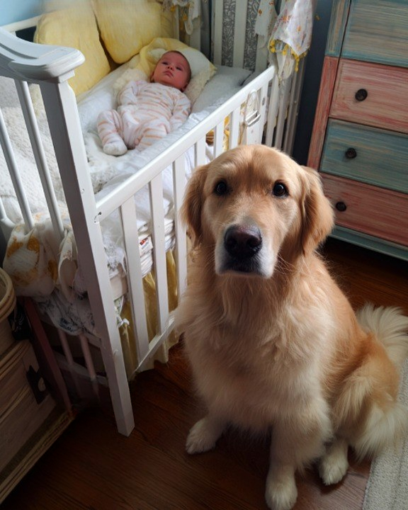Beau returned to his spot beside the crib, calm, eyes never leaving our daughter.