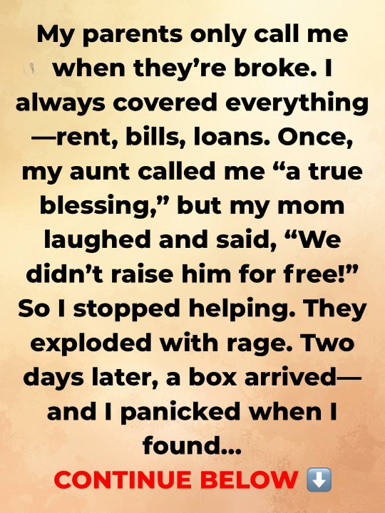 The reaction was immediate—anger, guilt trips, accusations. Then, a couple of days later, a package arrived at my door. Inside was an itemized bill listing everything they spent raising me: food, clothes, school—everything. They expected repayment.